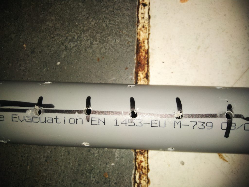 Prendre le tube pvc avec la longueur que voulais faire et on va le percer. Pour commencer on trace tous les 2 cm en commencent à 3 cm du bort et on trace un très tous le long du tube avant de tracer pour les trous