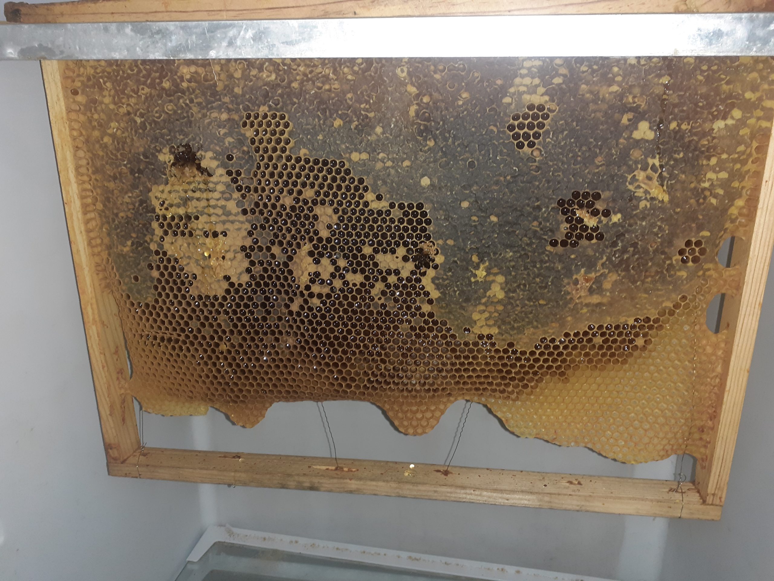 Une ruche a commencer à bâtir dans le nourrisseur je leur est donner un nouveau cadre à bâtir, en prélèvent un cadre de miel pour quel puisse bâtir. La bonne nouvelle c est quelle commence a préparer un nouveau cadre pour que la reine puisse pondre pondre et les réserves sont suffisante.