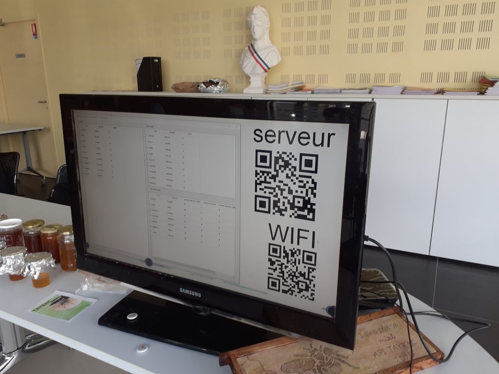 j’ai mi comme font écran deux QR code pour se connecter au routeur wifi et autre adresse ip du serveur pour se connecter pour repondre au question demander