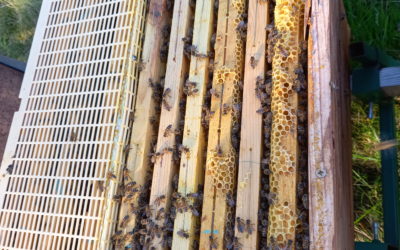 prise en passent à coter des ruches. sa fait toujours le même effet.demi cadre dadant…